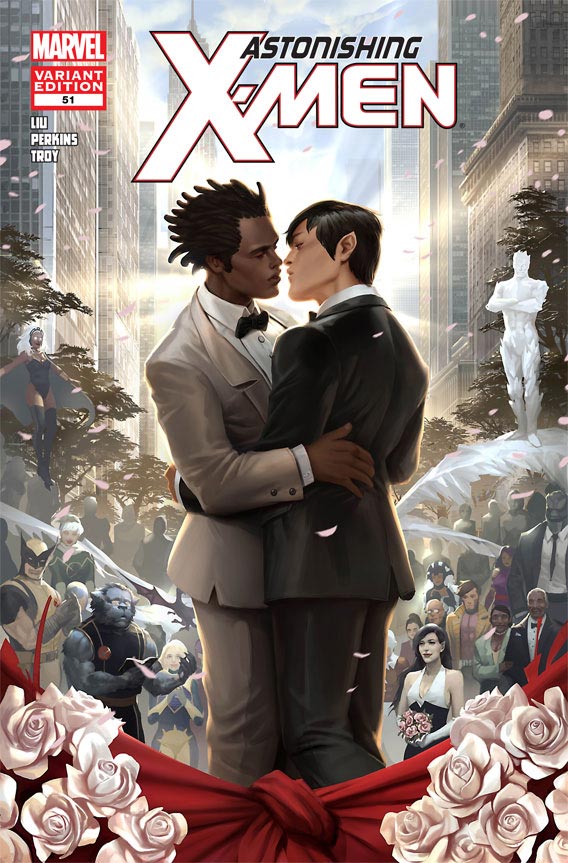 Northstar revealed he was gay in the pages of Alpha Flight No. 106 in 1992. He was one of Marvel’s first characters to do so. Since then, numerous comic book heroes and villains have been identified as gay, lesbian or transgender. The decision to wed Kyle and Northstar in Astonishing X-Men #51 has brought with it a lot of controversy. Marjorie Liu is writing the series. She says the decision to have the pair marry was fitting, noting that the relationship between Kyle and Northstar has grown in recent years,…